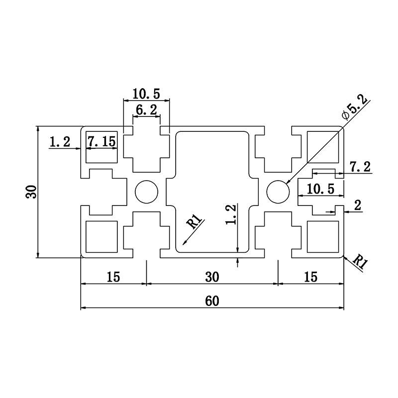30*60GF Frame Extrusion T-Slot Industrieel Aluminium Extrudeerde Profielen